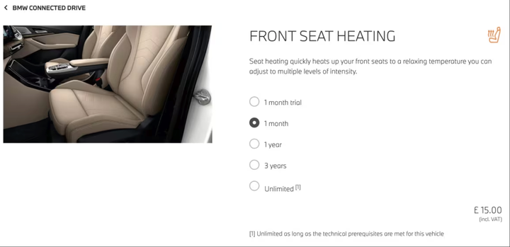 宝马的「座椅加热订阅服务」,在原车就附带了硬件功能的前提下,要求车主购车之后额外付费,才能点亮这一功能——舆论反弹后不得不宣布取消。